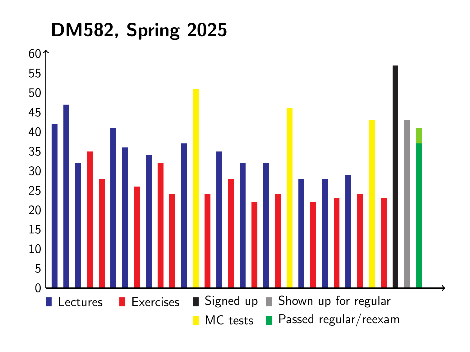 Attendance at lectures and exercises versus exam results: