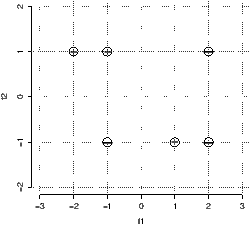 You are given the following data points: Negative: (-1, -1) (2, 1) (2, -1); Positive: (-2, 1) (-1, 1) (1,-1). The points are depicted in Figure 1.